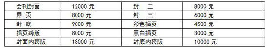 2、展會(huì)會(huì)刊:免費(fèi)刊登全部參展商名錄及企業(yè)簡(jiǎn)介。文字內(nèi)容以回執(zhí)表或郵件為準(zhǔn),會(huì)刊為32開(規(guī)格為210mm×142mm)銅板彩印,刊登廣告采取自愿原則,收費(fèi)標(biāo)準(zhǔn)如下: